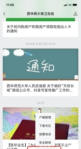 二、采集方式:在“西华师大保卫在线”微信公众号“服务指南”中“校园出入卡”栏目申报,详见附件“人脸识别系统学生信息采集指南”。